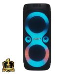 Este espectacular parlante con conexión Bluetooth, te permite reproducir música a través de tarjeta SD o USB, cuenta con salida Auxiliar y Radio FM, además incluye un micrófono alámbrico para hacer karaoke o perifoneo, ideal para negocios, posibilidad de adaptar en una base o trípode.